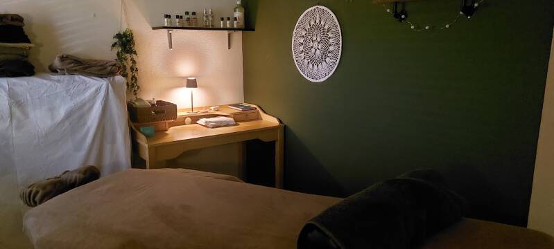 De kamer die ik gebruik voor de massages is rustig en sfeervol.